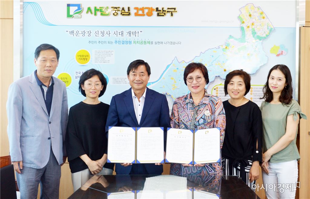 [아시아경제 노해섭 기자]광주 남구는 29일 오후 남구청 7층에서 최영호 구청장과 이금 금당중학교 교장 등 관계자가 참석한 가운데 2016년 '길 위의 인문학' 자유학기제 연계 프로그램 운영에 따른 업무협약을 체결했다.사진제공=광주 남구<ⓒ세계를 보는 창 경제를 보는 눈, 아시아경제(www.asiae.co.kr) 무단전재 배포금지>