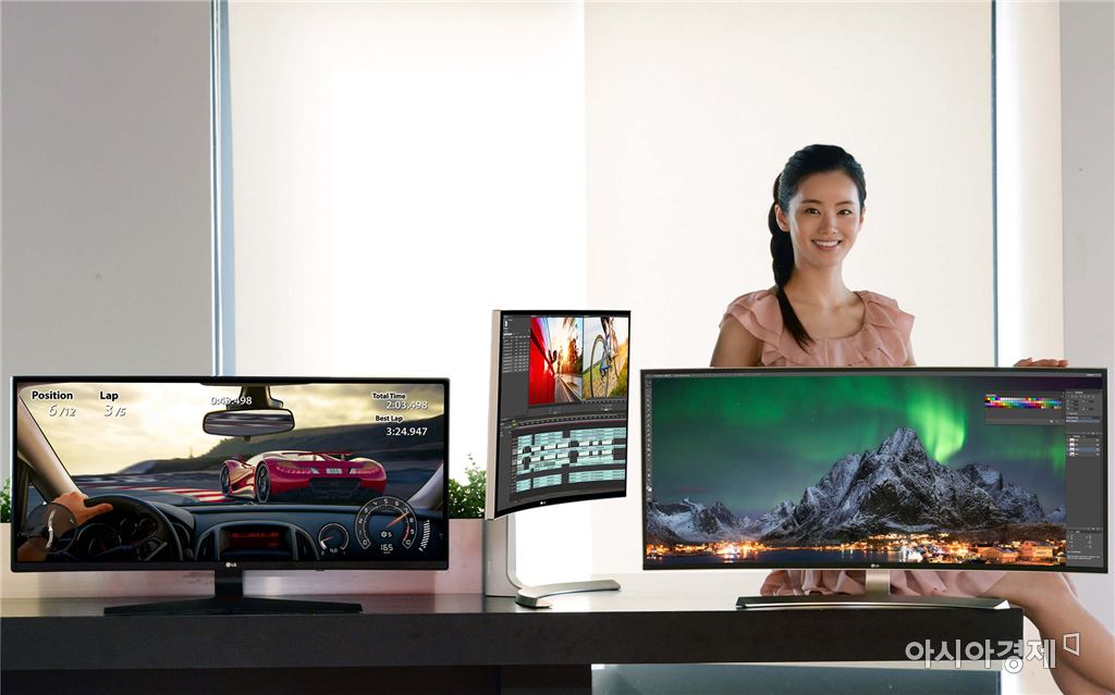 [아시아경제 원다라 기자]LG전자가 10월 중 38인치 울트라 와이드 모니터를 출시한다. 이는 지금까지 출시된 LG전자의 21:9 화면비 모니터 중 가장 큰 크기다. LG전자는 다음달 2일(현지시간)부터 7일까지 독일 베를린에서 개최되는 유럽 최대 규모 가전 전시회 'IFA 2016'에서 울트라와이드모니터 신제품(모델명: 38UC99)를 공개한다고 30일 밝혔다. 이번 신제품은 LG전자가 지금까지 선보인 울트라와이드모니터 중 가장 큰 38인치다. 기존 울트라와이드모니터의 최대 크기는 34인치다. 풀HD(1920x1080) 보다 2배 이상 해상도가 높은 QHD+(3840x1600) 곡면 디스플레이를 적용해 게임·동영상 감상 시 몰입감을 높일 수 있도록 했다. AMD사의 '프리싱크' 기술, LG전자가 자체 개발한 '1미리 세컨드 모션 블러 리덕션 기능'을 적용해 움직임이 빠른 화면에서 나타날 수 있는 잔상·화면 깨짐 현상을 최소화했으며 IPS패널로 어느 각도에서도 또렷한 화면을 보여준다. 출력이 10W인 스피커 2개를 내장했으며 스마트폰에 저장된 음악을 블루투스로 연결해 간편하게 들을 수 있도록 했다. USB 타입-C 단자를 적용해 모니터와 노트북을 연결하면 별도 충전기 없이 노트북을 충전할 수 있으며 화면 밝기·분할 비율 등 화면 설정은 마우스로 간편하게 조작할 수 있다. 게임에 특화된 34인치 신제품(모델명: 34UC79G)은 1초에 화면을 144장까지 보여줘 빠르게 바뀌는 화면도 부드럽게 보여준다.한편 LG전자는 지난 2013년부터 2015년까지 21:9 화면비 모니터 시장에서 매출액과 판매량 기준 모두 3년 연속 점유율 1위를 달성했다. 21:9 화면비 모니터 시장 규모는 매년 2배 이상 늘어나고 있다. LG전자는 이번 신제품을 IFA 2016에서 공개한 후 10월부터 유럽·북미·아시아 등에 순차 출시한다는 계획이다. 권봉석 LG전자 HE사업본부장(부사장)은 "고객의 니즈를 반영한 혁신적인 제품으로 글로벌 프리미엄 모니터 시장을 지속 선도해나가겠다"고 말했다. 원다라 기자 supermoon@asiae.co.kr<ⓒ세계를 보는 창 경제를 보는 눈, 아시아경제(www.asiae.co.kr) 무단전재 배포금지>