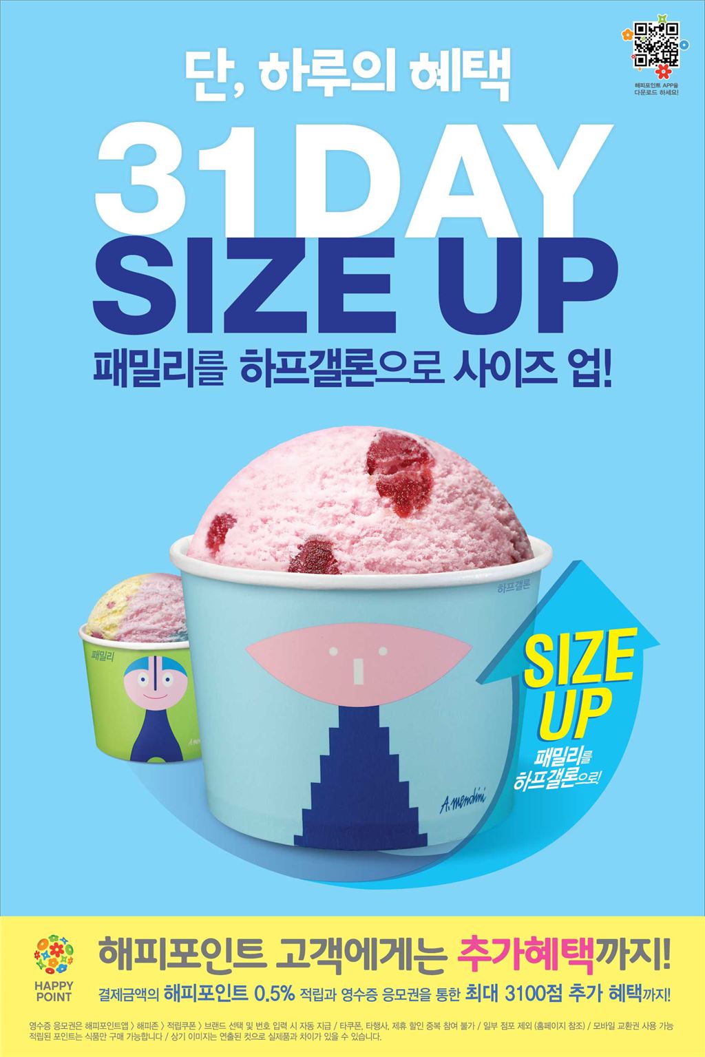 [아시아경제 이주현 기자]배스킨라빈스가 이달 31일에 ‘31데이’ 프로모션을 진행한다. ‘31데이’ 프로모션은 5가지 맛을 골라 담을 수 있는 패밀리(1만9500원) 구매 시 6가지 아이스크림을 맛볼 수 있는 하프갤론(2만3500원)으로 사이즈 업그레이드를 제공하는 행사다.배스킨라빈스 고객이면 누구나 ‘31데이’ 프로모션에 참가할 수 있다. 해피포인트 회원은 사이즈 업 혜택과 더불어 결제 금액의 0.5%에 해당하는 해피포인트 적립 혜택도 함께 받을 수 있다. 해피포인트 앱 내 해피존에서 아이스크림 구입 영수증 쿠폰 번호를 입력하면 최대 3100점의 해피포인트 적립 혜택을 제공하는 행사에도 참여할 수 있다. 31데이 참여 시 타 쿠폰, 타 행사, 제휴할인의 중복 적용은 불가능하며, 31데이 진행 점포는 배스킨라빈스 홈페이지를 통해 확인 할 수 있다.이번 프로모션은 배스킨라빈스의 모바일 주문 예약 시스템인 ‘해피오더’로도 참여 가능하다. 해피오더 서비스는 언제 어디서나 해피포인트 앱을 통해 주문과 결제를 먼저 진행 후 예약한 시간에 매장에서 제품을 바로 찾아가는 서비스다. 특히, 많은 고객들이 방문하는 ‘31데이’ 행사 참여 시 해피오더 서비스를 활용하면 기다림 없이 바로 제품을 바로 수령할 수 있다. 이주현 기자 jhjh13@asiae.co.kr<ⓒ세계를 보는 창 경제를 보는 눈, 아시아경제(www.asiae.co.kr) 무단전재 배포금지>