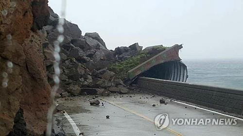 산사태에 무너진 터널 (울릉=연합뉴스)