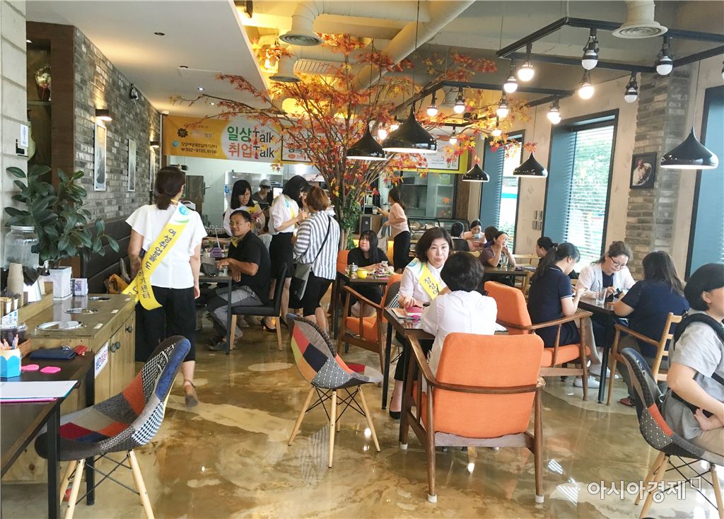 지난 26일 장성의 한 카페에서 구직여성과 취업 지원관계자 50여명이 편안한 분위기속에서 취업스트레스와 궁금증을 해소를 돕기 위한 ‘일상 TALK, 취업 TALK’프로그램 운영 모습. 사진=장성군