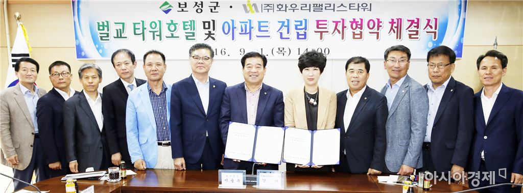 "내년 12월 완공, 최고급 관광호텔 건립으로 체류형 관광 유도" [아시아경제 노해섭 기자]보성군(군수 이용부)은 1일 보성군청 소회의실에서 (주)화우리팰리스타워(대표이사 강미)와 벌교읍 관광호텔 건립을 위한 투자협약을 체결했다. 이번 협약은 보성군이 벌교 전통시장 시설현대화사업의 이주대책 일환으로 공동주택 건립을 계획하던 중 공동주택과 관광호텔이 결합된 건축물 건립의 투자제안에 따라 협약이 체결되었다. 벌교읍 관광호텔은 총 90억원(군비 35, 민간 55)을 들여 벌교읍 회정리에 상인이주에 필요한 아파트 21세대, 주거와 상업을 분리한 최고급 호텔형 40실, 최상층 스카이라운지 및 전망대를 오는 2017년 완공을 목표로 건립될 계획이다. 군에 따르면 군비가 투자되는 사업인 만큼 철저한 검증과 협상 과정을 거치며, 공정성과 투명성을 확보하기 위해 제3자 공고를 통해 협상대상자를 최종 선정할 방침이다. 강미 대표이사는 “꼬막으로 전국적인 인지도가 높은 벌교는 관광객이 꾸준히 증가하고 있으나 숙박여건은 열악한 실정이므로 관광객 수요 및 요구에 부합하는 숙박시설 건립에 최선을 다하겠다”고 말했다. 이용부 군수는“벌교는 꼬막과 문학기행 1번지로 유명하며, 온화한 기후와 교통요충지로서 스포츠 인프라가 구축되어 있어 전지훈련지로 각광을 받고 있다”며 “벌교에 고급관광호텔이 건립되면 부족한 숙박시설이 확충되고 체류형 관광이 이뤄져 지역경제 활성화에 크게 기여할 것이다”고 말했다.노해섭 기자 nogary@<ⓒ세계를 보는 창 경제를 보는 눈, 아시아경제(www.asiae.co.kr) 무단전재 배포금지>