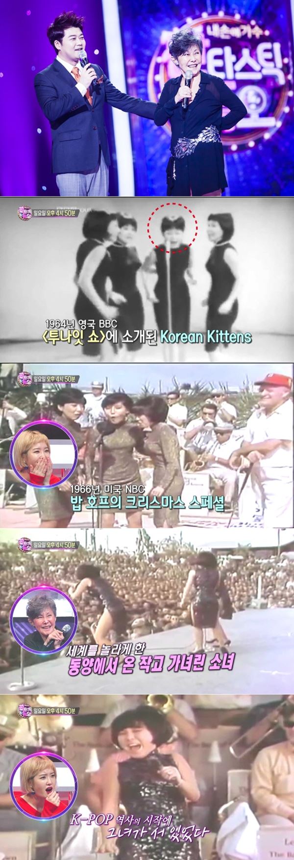 [아시아경제 송윤정 인턴기자] 윤복희가 '판타스틱 듀오' 무대를 초토화 시켰다. 4일 방송된 SBS '일요일이 좋다-판타스틱 듀오'에서는 '영원한 무대 위의 피터팬' 윤복희가 출연해 열띤 호응을 받았다. 올해로 데뷔 65주년을 맞은 가요계의 '살아있는 전설'이자 원조 한류 스타, 군통령·걸그룹의 시조새이기도 한 윤복희는 뮤지컬 버전으로 편곡한 '여러분'을 부르며 무대와 객석을 장악했다. 60년대 당시 19살이던 윤복희가 속한 4인조 걸그룹 '코리안 키튼즈'는 미국, 유럽, 필리핀 등지에서 활발한 활동을 펼쳤다. 그는 "루이 암스트롱이 미국에 날 초대했다"며 전격 캐스팅된 사연과 새미 데이비스 주니어, 잭슨 파이브 등 전설적인 인물들과 한 무대에 섰던 과거를 밝혀 모두를 깜짝 놀라게 했다.또한 이날 '코리안 키튼즈'가 1964년 영국 '투나잇 쇼'에 출연해 비틀즈의 히트곡 'Can't buy me love'를 부르는 모습과 1966년 미국 NBC '밥 호프의 크리스마스 스페셜'에 출연한 방송분이 공개돼 이목을 집중시켰다.송윤정 인턴기자 singasong@asiae.co.kr<ⓒ세계를 보는 창 경제를 보는 눈, 아시아경제(www.asiae.co.kr) 무단전재 배포금지>