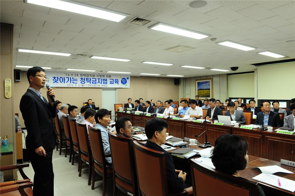 구리시가 간부공무원을 대상으로 청탁금지법 사전 교육을 실시했다. 참석 공무원들이 강의를 주의깊게 듣고 있다.