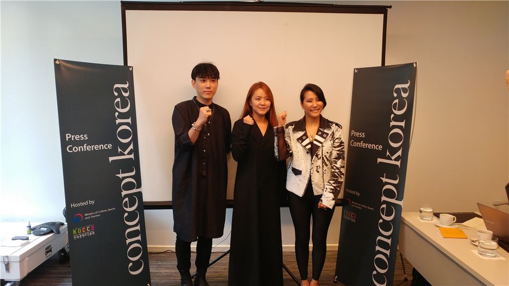 오는 8일부터 뉴욕 맨해튼에서 열리는 컨셉코리아(Concept Korea S/S 2017)에 참가하는 디자이너들. 왼쪽부터 요하닉스(YOHANIX)의 김태근 디자이너, 키미제이(KIMMY.J) 김희진 디자이너, 그리디어스(GREEDILOUS)의 박윤희 디자이너.