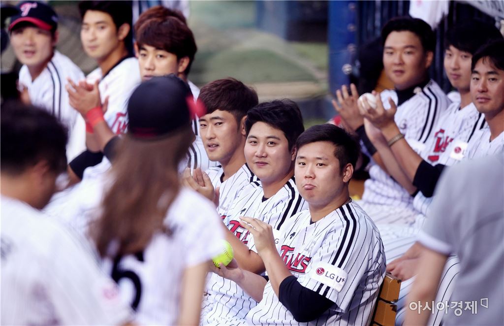 [아시아경제 김현민 기자]프로야구 넥센 히어로즈와 LG 트윈스의 2016 KBO리그 경기가 6일 잠실구장에서 열렸다. LG 더그아웃의 선수들이 시구를 마치고 경기장을 나서는 리듬체조 국가대표 손연재를 바라보고 있다. 김현민 기자 kimhyun81@asiae.co.kr<ⓒ세계를 보는 창 경제를 보는 눈, 아시아경제(www.asiae.co.kr) 무단전재 배포금지>