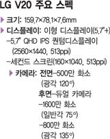 ◆전후면 광각 카메라…"셀카봉 없이도 단체 셀피·넓은 풍경"= V20는 후면에 75도 화각의 1600만 화소 일반각 카메라와 135도 화각의 800만 화소 광각 카메라를 탑재했다. 전면에는 120도 화각의 500만 화소 광각 카메라를 적용했다. 전면 광각 카메라는 셀카봉 없이도 7~8명의 인원이 함께 촬영할 수 있으며, 후면 광각 카메라는 넓게 펼쳐진 자연 풍경을 찍을 때 유리하다. V20는 '흔들림 보정 기능(Steady Record 2.0)'을 탑재, 안정적이고 떨림 없는 동영상 촬영이 가능하다. 흔들림 보정 기능은 자이로 센서 기반의 '전자식 손떨림 방지(EIS)' 기능에 프레임내 피사체 위치를 분석해 보정하는 '디지털 이미지 보정(DIS)' 기능이 더해져 더욱 향상된 효과를 얻을 수 있다. '하이브리드 오토 포커스' 기능을 탑재해 빠르고 안정적인 촬영을 할 수 있다. V20는 레이저 빔으로 촬영 대상까지의 거리를 측정해 초점을 맞추는 '레이저 오토 포커스', 렌즈에서 들어오는 빛을 이미지센서 2개에 나눠 보내 두 빛 간 거리가 맞도록 조절해 초점을 맞추는 '위상차 오토 포커스', 이미지 센서에 들어온 빛의 명암비를 분석해 초점을 맞추는 '콘트라스트 오토 포커스' 등 세 가지 방식으로 동시에 측정해 초점을 맞춘다.LG V20 광각 카메라