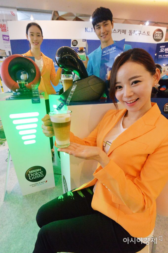 [아시아경제 문호남 인턴기자] 네스카페 돌체구스토가 8일 서울 송파구 하이마트 롯데월드몰점에서 6세대 프리미엄 캡슐커피 머신 모벤자(Movenza)와 이클립스(Eclipse)를 홍보하고 있다. 트렌디한 메탈 소재의 이번 신제품은 캡슐 제거 알람, 30가지 이상의 대용량 음료 추출이 가능한 것이 특징이다. 문호남 인턴기자 munonam@asiae.co.kr<ⓒ세계를 보는 창 경제를 보는 눈, 아시아경제(www.asiae.co.kr) 무단전재 배포금지>