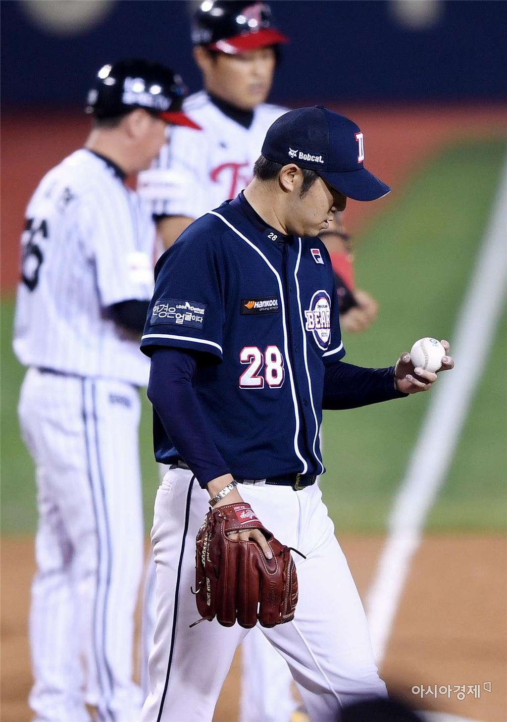 [아시아경제 김현민 기자]프로야구 두산 베어스와 LG 트윈스의 2016 KBO리그 경기가 9일 잠실구장에서 열렸다. 두산 선발 장원준이 5회말 2사 1,2루에서 LG 대타 채인성에게 역전 2타점 3루타를 허용하고 있다.김현민 기자 kimhyun81@asiae.co.kr<ⓒ세계를 보는 창 경제를 보는 눈, 아시아경제(www.asiae.co.kr) 무단전재 배포금지>