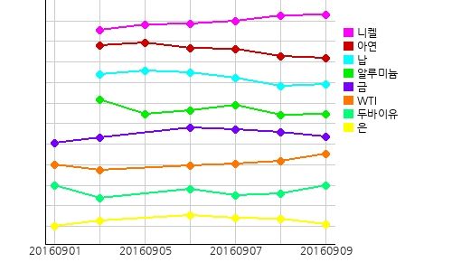 국제 원자재 시장에서 WTI(서부텍사스산원유)의 현물시세가 전일 대비 2.12 달러 오른 배럴당 47.62 달러를 기록했고, 두바이유 현물시세는 전일 대비 1.16 달러 오른 배럴당 44.83 달러를 기록했다.금 현물시세는 전일 대비 9.82 달러 떨어진 온스당 1328.4 달러를 기록했고, 은 현물시세도 전일 대비 0.57 달러 떨어진 온스당 19.05 달러를 기록했다.주요광물시세는 니켈이 전일 대비 톤당 29 달러 올라 10339 달러를 기록했고 납, 알루미늄이 상승세를 보이는 반면, 주석이 전일 대비 톤당 89.5 달러 떨어져 19574 달러를 기록했고 아연이 하향세를 보였다.환율