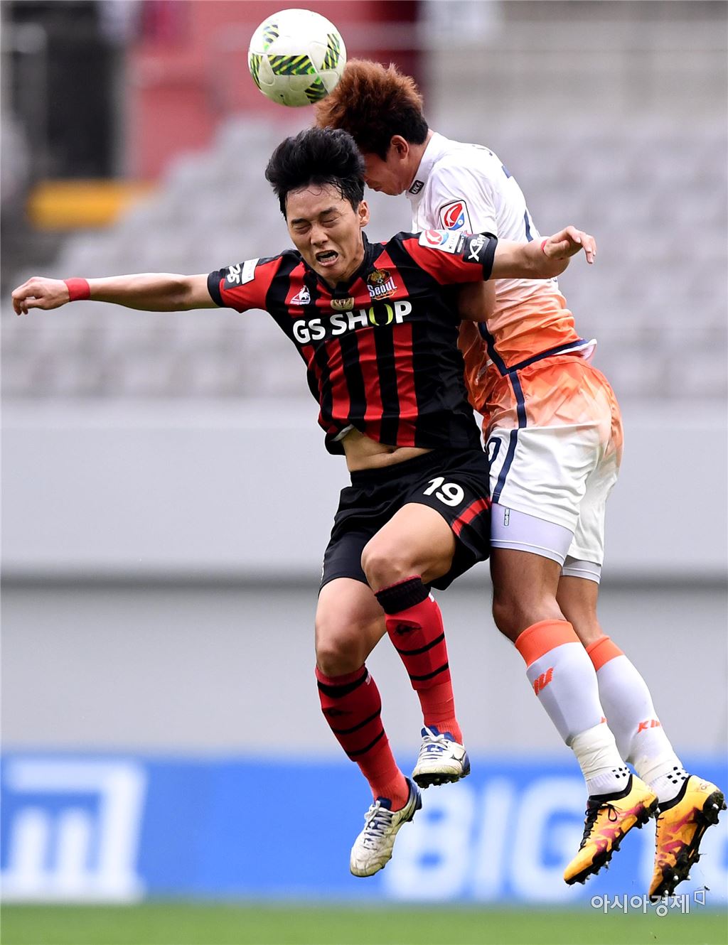 [아시아경제 김현민 기자]프로축구 FC서울과 제주 유나이티드의 2016 K리그 클래식 경기가 18일 서울월드컵경기장에서 열렸다. 서울 윤주태가 제주 이광선과 공중볼을 다투고 있다. 김현민 기자 kimhyun81@asiae.co.kr<ⓒ세계를 보는 창 경제를 보는 눈, 아시아경제(www.asiae.co.kr) 무단전재 배포금지>