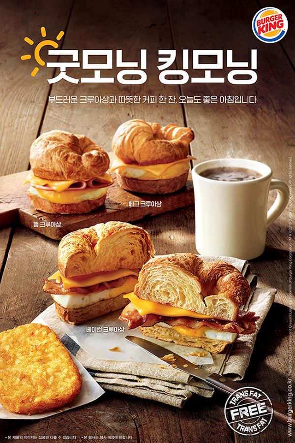 [아시아경제 오주연 기자]버거킹이 아침 메뉴 ‘킹모닝’에 크루아상 3종을 추가로 내놨다고 19일 밝혔다. 이번에 출시한 신제품은 '트랜스지방 프리' 크루아상을 활용한 것이 특징으로, 베이컨 크루아상과 햄 크루아상, 에그 크루아상 등 3가지 제품이다. 가격은 콤보 기준 3000원부터 3400원까지, 세트는 3900원부터 4000원까지. 신메뉴 3가지 제품은 고소한 향의 부드러운 크루아상 사이에 슬라이스 치즈와 계란 패티를 올리고 메뉴에 따라 각각 베이컨, 햄, 등을 더한 것이 특징이다. 특히 킹모닝에 사용되는 크루아상은 트랜스지방 프리 제품으로 건강한 아침을 시작하는 소비자들의 관심을 받을 것으로 기대하고 있다. 이번에 출시되는 킹모닝 콤보는 RA 인증 커피와 제공되며, 킹모닝 세트는 RA 인증 커피 및 해쉬 브라운과 함께 제공된다. RA 인증 커피는 우수한 맛과 품질은 물론 국제 비영리 단체 RA가 인증한 자연과 생산환경을 고려한 커피다.오주연 기자 moon170@asiae.co.kr<ⓒ세계를 보는 창 경제를 보는 눈, 아시아경제(www.asiae.co.kr) 무단전재 배포금지>