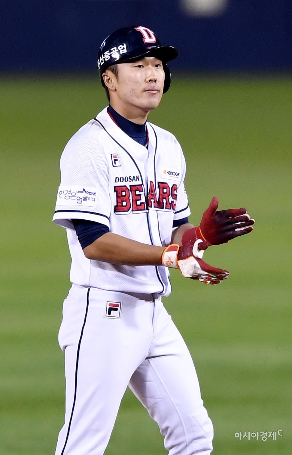 [아시아경제 김현민 기자]프로야구 삼성 라이온즈와 두산 베어스의 2016 KBO리그 경기가 20일 잠실구장에서 열렸다. 2회말 1사 만루에서 두산 허경민이 선취 2타점 2루타를 치고 출루한 뒤 박수치고 있다. 김현민 기자 kimhyun81@asiae.co.kr<ⓒ세계를 보는 창 경제를 보는 눈, 아시아경제(www.asiae.co.kr) 무단전재 배포금지>