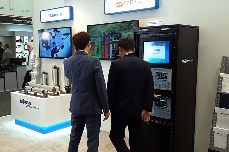 [아시아경제(대전) 정일웅 기자] 국내에서 개발 중인 철도 핵심부품(시제품)을 국제 철도시장에 선보이는 첫 자리가 마련됐다. 이 부품들은 현장 적용시험과 실증시험을 거쳐 오는 2018년 4월 말까지 개발 완료될 예정이다.코레일은 20일(현지시간 기준)부터 나흘간 독일 베를린 엑스포센터에서 열리는 ‘이노트랜스(Innotrans) 2016’ 박람회에 철도 핵심부품 ▲교류철도용 보호계전기 ▲250km/h급 강체전차선 ▲고속차량용 수평댐퍼 ▲자동복합 전기연결기 ▲철도차량용 차축베어링 ▲가동브래킷 변형검측장치 ▲철도무선통신장치 LTE-R 단말기 등을 전시한다고 21일 밝혔다.국내에서 시제품으로 개발된 ‘250km/h급 강체전차선’이 독일에서 열린 철도박람회장에 전시됐다. 코레일 제공