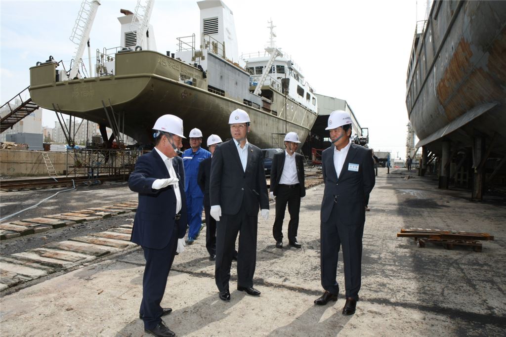 [아시아경제(대전) 정일웅 기자] 정양호 조달청장은 21일 전북 군산시 소재 선박제조업체 ㈜삼원중공업에서 한국조선공업협동조합과 중소조선기업 대표와의 간담회를 갖고 조선업계의 현장 애로사항을 청취했다. 이 자리에서 조선업계 관계자들은 중소 조선기업의 경영활성화를 위해 소형 조선소에 공공조달 입찰 참여 기회를 확대해 줄 것과 입찰참가자격의 완화 등을 건의했고 정 청장은 업계를 지원하는 차원에서 조달제도와 관련 제도를 정비, 경영활성화에 힘을 보태겠다고 말했다. 정 청장(왼쪽 두 번째)과 조선업계 관계자들이 삼원중공업 조선소를 둘러보고 있다. 조달청 제공 대전=정일웅 기자 jiw3061@asiae.co.kr<ⓒ세계를 보는 창 경제를 보는 눈, 아시아경제(www.asiae.co.kr) 무단전재 배포금지>정일웅 기자 jiw3061@asiae.co.kr<ⓒ아시아 대표 석간 '아시아경제' (www.newsva.co.kr) 무단전재 배포금지>