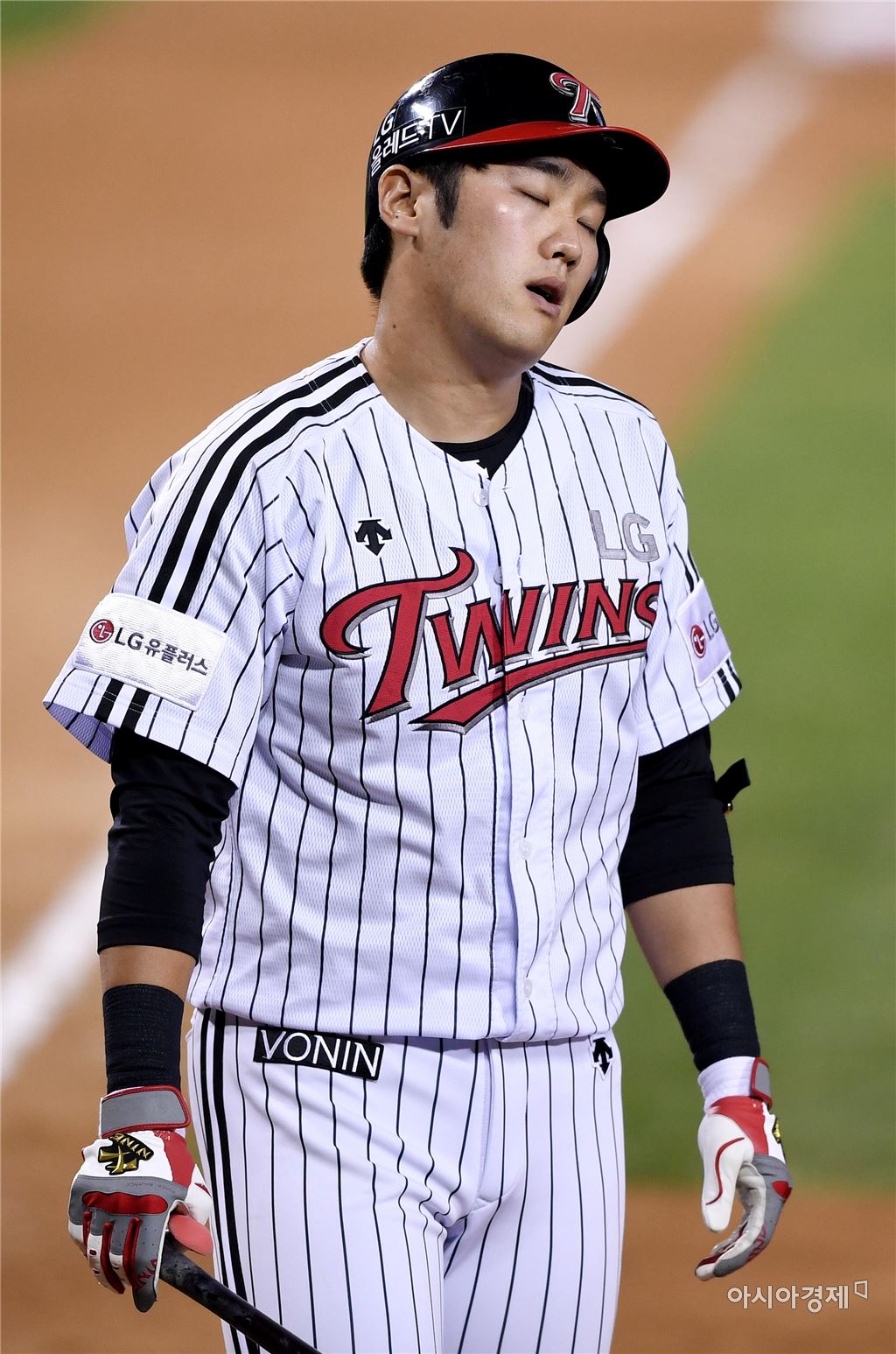 [아시아경제 김현민 기자]프로야구 NC 다이노스와 LG 트윈스의 2016 KBO리그 경기가 21일 잠실구장에서 열렸다. 6회말 무사 1,2루에서 LG 양석환이 번트 뜬공으로 물러나며 아쉬워하고 있다. 김현민 기자 kimhyun81@asiae.co.kr<ⓒ세계를 보는 창 경제를 보는 눈, 아시아경제(www.asiae.co.kr) 무단전재 배포금지>