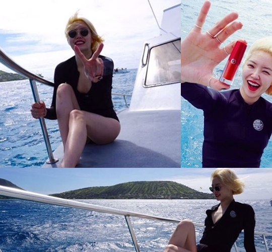 [아시아경제 온라인이슈팀] 방송인 김새롬이 하와이 여행 근황을 공개했다. 김새롬은 자신의 인스타그램을 통해 "수중 스쿠터 했어"라는 글과 함께 사진을 게재했다. 사진 속 김새롬은 블랙 래시가드를 입고 완벽한 보디라인을 뽐냈다. 특히 매끈하게 뻗은 각선미가 눈길을 사로 잡았다. <center><div class="slide_frame"><input type="hidden" id="slideIframeId" value="2015102611055065803A">