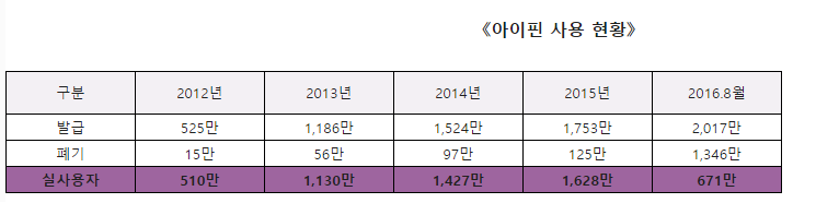 아이핀 사용 현황. 단위 : 건 / 사진 제공=신경민 의원실
