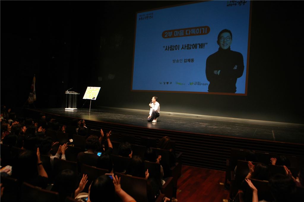 [아시아경제 박종일 기자] 보육시설에서 아이들이 행여 사고라도 날까 한시도 눈을 떼지 못하며 돌보는 보육교직원은 끊임없는 스트레스로 몸과 마음 둘 다 힘들다. 사명감을 갖고 일선에서 최선을 다하지만 최근 자주 들려오는 어린이집 영유아 학대 소식에 사기마저 꺽이곤 한다.이런 헛헛한 보육교직원의 맘을 챙기기 위해 강동구(구청장 이해식)가 나섰다. 올해 자치구로서는 처음으로 민간·가정 어린이집 보육교직원 연수를 개최해 보육교직원으로서의 보람과 사명감을 재충전하는 기회를 제공한 것.연수는 22일 800여 명을 수용할 수 있는 강동아트센터 대극장 한강에서 열렸다.이번 연수에서는 최근 사회적인 문제가 되고 있는 아동학대 관련 예방교육과 함께 보육교직원과 함께 하는 힐링콘서트로 스트레스를 날리는 시간을 마련했다.1부 인성 및 아동학대예방교육은 조용남 한국보육진흥원 국장이 강연을 맡아 보육현장에서 벌어지는 다양한 사례와 함께 영유아 안심보육, 긍정적인 지도 방법, 영아중심의 놀이교육 등 실무에서 활용가능한 정보를 전달했다.