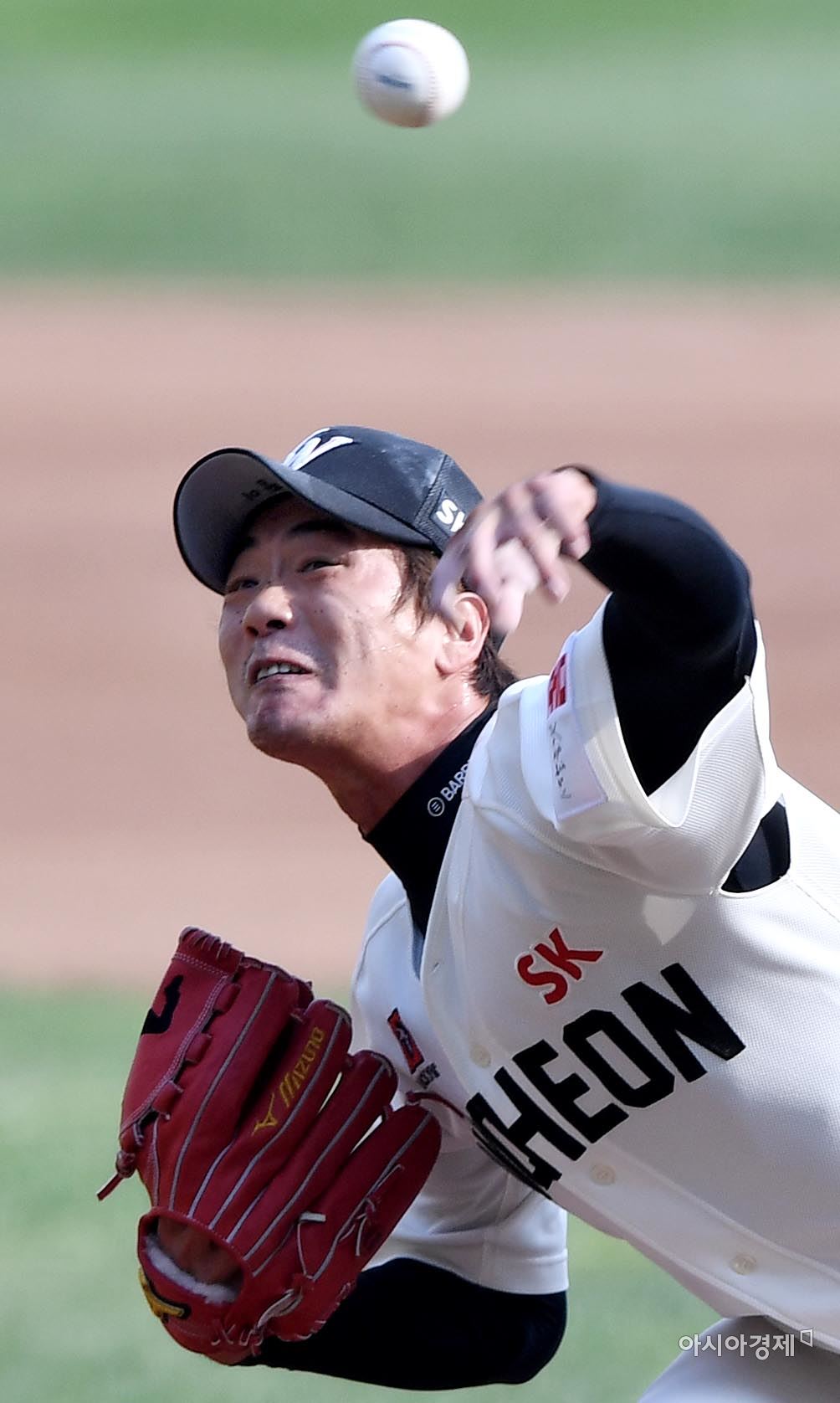 [인천=아시아경제 김현민 기자] 프로야구 한화 이글스와 SK 와이번스의 2016 KBO리그 경기가 25일 인천 SK행복드림구장에서 열렸다. 6회초 SK 선발 윤희상에 이어 마운드에 오른 김광현이 역투하고 있다. 김현민 기자 kimhyun81@asiae.co.kr<ⓒ세계를 보는 창 경제를 보는 눈, 아시아경제(www.asiae.co.kr) 무단전재 배포금지>
