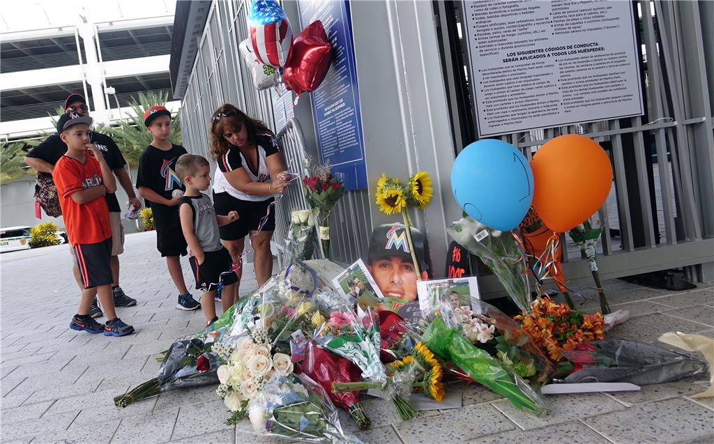 ▲말린스 구장 앞에서 호세 페르난데스의 팬들이 헌화하고 있다. (AP =연합뉴스)