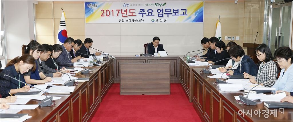 "민선6기 3년차 군민체감 성과 창출과 군민배려 시책 발굴"[아시아경제 노해섭 기자]보성군(군수 이용부)은 지난 19일부터 23일까지 기간 중 4일간 군청 소회의실에서 군수, 부군수, 실과소장, 담당계장 및 담당자가 참석한 가운데 2017년도 주요업무계획 보고회를 개최했다.군에 따르면 실과소별로 금년도 업무추진 상황 점검 및 주요성과를 돌아보고 개선책을 검토함과 동시에 2017년도 업무추진을 위한 정책여건과 과제 그리고 주요사업, 신규시책 등을 보고함으로써 군정 발전 방안을 집중 모색했다.첫날 보고에서는 시대적 변화에 따른 인구감소와 고령화 등 여러 가지 어려움을 겪고 있지만, 이러한 위기를 기회로 삼아 100세 시대를 맞는 노인일자리 전담기관인 보성시니어클럽 운영 활성화와 건강, 문화, 교육 프로그램을 적극 운영하여 행복한 노후생활 보장, 장애인, 여성 등 사회적 약자를 위한 맞춤형 생활서비스 강화, 장애인 복지시설 설치·운영, 사각지대 발굴 및 취약계층의 생활안정 등 능동적이고 미래지향형 복지서비스 확대 방안 등을 집중 논의했다. 이외에도 보성 열선루 중건, 가고 싶은 섬 가꾸기, 보성 국민체육센터 건립, 생태하천정비와 생태공원 조성, 농어촌도로와 교량건설 등 간선도로망 확충, 거점면 소재지·권역단위 종합개발사업, 전통시장 시설환경개선 및 오메 존거 보성야시장 활성화, 각종 공모사업 확보 방안 등의 논의가 심도 있는 토론으로 이어져 내년도 지역발전을 위한 창의적인 정책 비전을 제시하고, 각종 사업 추진이 탄력을 받을 것으로 기대된다.이용부 군수는 업무보고를 통해 주요 현안사업은 선택과 집중을 통해 완성도 있게 추진하여 가시적 성과를 창출할 것과 신규 사업은 경제적 타당성과 실행방안을 꼼꼼히 검토하여 예산이 낭비되지 않도록 전 공직자가 긍정적인 마인드로 업무에 임해주기를 당부했다. 노해섭 기자 nogary<ⓒ세계를 보는 창 경제를 보는 눈, 아시아경제(www.asiae.co.kr) 무단전재 배포금지>
