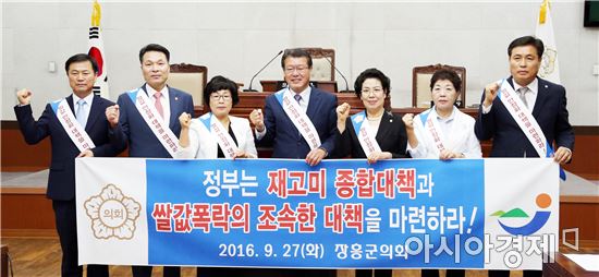 "제224회 임시회 제2차 본회의서 ‘쌀값 안정화 대책 마련 촉구 결의안’채택"[아시아경제 노해섭 기자]장흥군의회(의장 김복실)는 27일 열린 제224회 임시회 제2차 본회의에서 ‘쌀값 폭락에 따른 쌀값 안정화 대책 마련 촉구 결의안’을 채택했다고 밝혔다.이날 채택된 결의안은 사상 초유의 쌀값 폭락에 따른 대책마련을 촉구하는 것으로, 공공비축미 매입물량 확대 등 쌀값 안정을 위한 실효적인 종합대책 마련을 정부에 요구했다.장흥군의회 소속 의원들은 “올해도 예년에 없는 대풍이지만 쌀값은 4년째 하락하여 40㎏ 기준 작년 5만원 하던 쌀값이 3만5천원까지 하락했다. 25년 전 쌀값으로 폭락하는 초유의 사태가 발생하고 있어 쌀농사를 짓는 농가의 생존권이 크게 위협받고 있다”고 입을 모았다.이어 “정부에서 밥쌀용 쌀 수입을 전면 중단하고 재고미 종합대책을 수립해야한다”며, “쌀 수매량을 확대와 정책자금 지원 확대 등 벼 수확기 이전에 쌀 값 폭락의 조속한 대책을 마련해야 해야한다”고 목소리를 높였다.한편, 결의안을 대표 발의한 유상호 의원은 “정부가 쌀산업의 중요성을 외면하고 있어 쌀값이 계속 폭락하고 있다”면서 “앞으로 정부의 실효성 있는 재고미 종합대책과 쌀값 안정화 대책 마련이 시급하다”고 말했다.노해섭 기자 nogary@<ⓒ세계를 보는 창 경제를 보는 눈, 아시아경제(www.asiae.co.kr) 무단전재 배포금지>