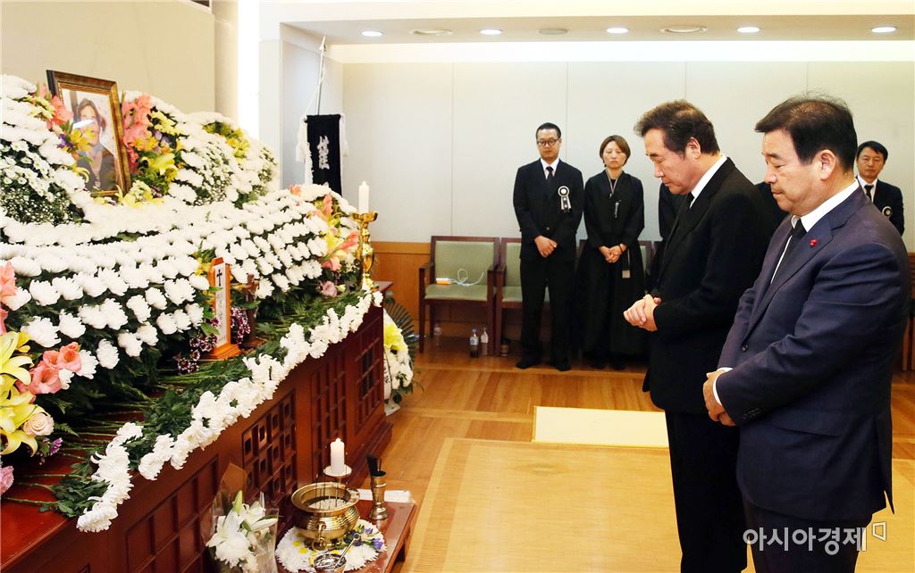 [아시아경제 노해섭 기자]이낙연 전남지사와 이용부 보성군수가 28일 오후 서울 종로구 서울대학교병원 장례식장에 마련된 고 백남기 농민 빈소를 찾아 조문하고 있다. 사진제공=전남도 <ⓒ세계를 보는 창 경제를 보는 눈, 아시아경제(www.asiae.co.kr) 무단전재 배포금지>