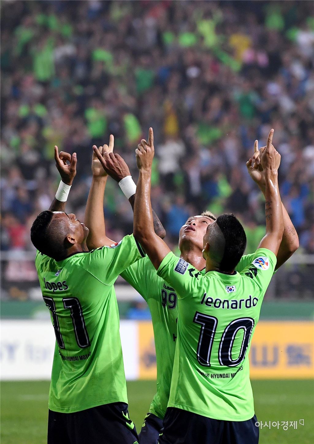 [전주=아시아경제 김현민 기자]프로축구 전북 현대와 FC 서울과의 2016 아시아축구연맹 챔피언스리그(ACL) 준결승 1차전이 28일 전주월드컵경기장에서 열렸다. 전북 로페즈가 전반 2-0 추가골을 성공시키고 김신욱, 레오나르도와 세리머니하고 있다. 김현민 기자 kimhyun81@asiae.co.kr<ⓒ세계를 보는 창 경제를 보는 눈, 아시아경제(www.asiae.co.kr) 무단전재 배포금지>