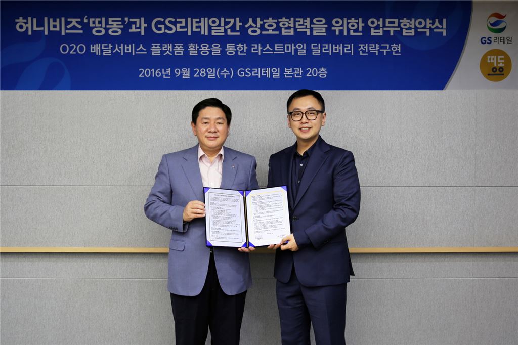 GS리테일은 배송 효율성 높아지고 허니비즈는 새로운 수익 창출 기회[아시아경제 조호윤 기자]GS리테일이 배송 효율화를 통한 고객 만족 증대를 위해 딜리버리 서비스 전문 업체와 손잡았다.GS리테일은 온디맨드 온·오프연계(O2O)서비스 띵동으로 유명한 허니비즈와 ‘O2O 배달서비스 플랫폼 활용을 통한 라스트 마일 딜리버리 전략 구현을 위한 업무협약(MOU)’을 체결했다고 29일 밝혔다.이번 업무협약식에는 허연수 GS리테일 대표이사, 윤문진 허니비즈 대표이사와 양사의 임직원이 참석한 가운데 역삼동 GS리테일 본사 대회의실에서 진행됐다.현재 띵동은 강남, 송파, 서초, 관악구 등 서울지역 6개 자치구에서 서비스를 전개하고 있으며, 9월 중 광진, 동대문구까지 총 8개 지역에서 서비스를 진행할 예정이다.GS리테일은 현재 서비스 중인 띵동의 플랫폼을 활용해 기존에 배송 서비스를 진행해 왔던 GS수퍼마켓과 온라인 쇼핑몰 GS 아이수퍼의 배송 효율성이 크게 높아질 수 있을 것으로 예상하고 있다.이번 MOU를 통해 8개 자치구의 GS수퍼마켓과 GS 아이수퍼는 배송 요청이 급격히 증가하는 요일이나, 시간대에도 띵동과의 협력을 통해 보다 효율적이고 정확한 배송을 진행할 수 있게 됐다. 또 배송 요청이 적어 점포 별도로 배송 서비스를 진행하지 못했던 점포도 배송 서비스가 가능하게 됐다.고객이 특별한 사유로 기존 배송 서비스보다 빠른 배송을 원하는 경우, 띵동을 통해 고객이 원하는 시간이면 언제든지 상품을 수령할 수 있는 차별화된 딜리버리 서비스도 제공해 나갈 예정이다.조호윤 기자 hodoo@asiae.co.kr<ⓒ세계를 보는 창 경제를 보는 눈, 아시아경제(www.asiae.co.kr) 무단전재 배포금지>