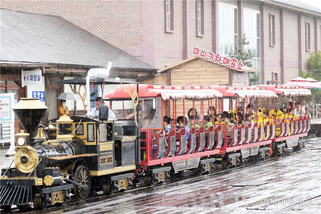 [아시아경제 노해섭 기자]가을비가 촉촉이 내리는 가운데 30일 ‘제16회 곡성심청축제’가 열리고 있는 섬진강 기차마을에 유치원생들이 찾아와 미니기차를 타면서 즐거워하고 있다. 곡성 심청축제는 30일부터 10월 3일까지 가을빛이 절정인 곡성 섬진강 기차마을에서 펼쳐진다. 노해섭 기자 nogary@<ⓒ세계를 보는 창 경제를 보는 눈, 아시아경제(www.asiae.co.kr) 무단전재 배포금지>