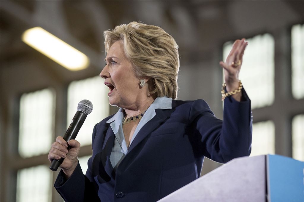 ▲유세 연설을 하고 있는 힐러리 클린턴 민주당 대선후보. (AP= 연합뉴스)