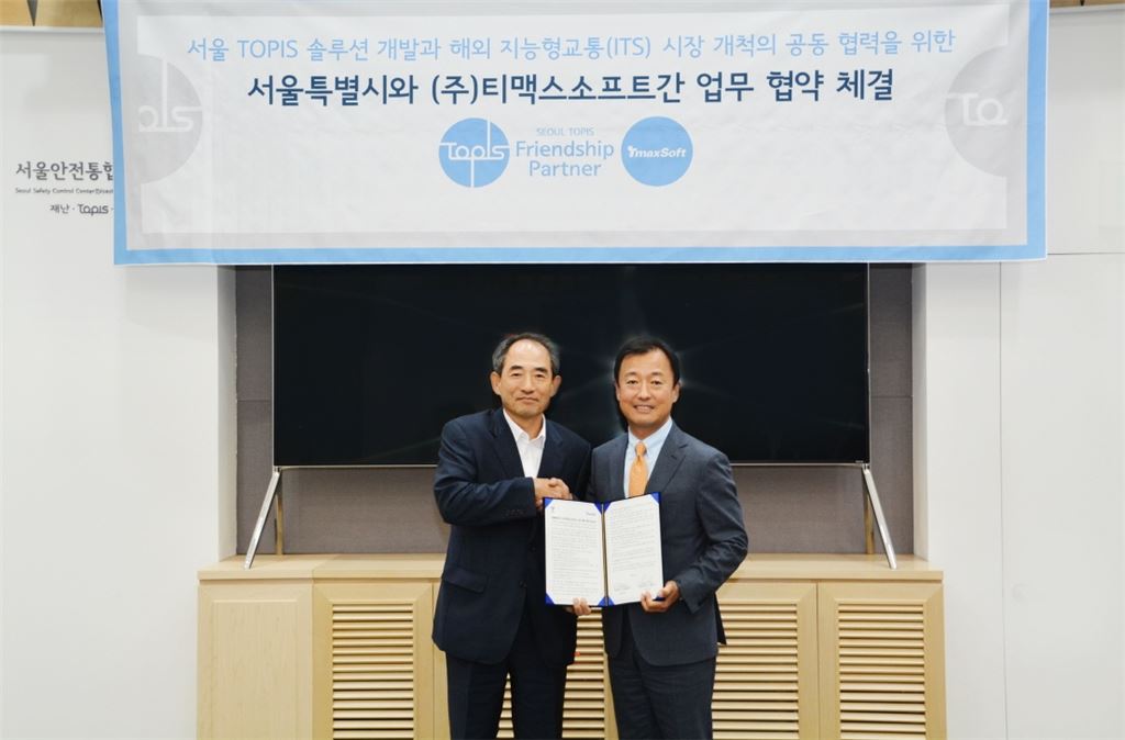 윤준병 서울특별시 도시교통본부장(왼쪽)과 장인수 티맥스소프트 대표이사