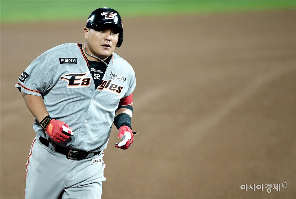 [수원=아시아경제 김현민 기자]프로야구 한화 이글스와 kt 위즈의 2016 KBO리그 경기가 5일 수원구장에서 열렸다. 7회초 한화 선두타자 김태균이 kt 피어밴드를 상대로 좌월 솔로홈런을 치고 베이스를 돌고 있다. 역대 최연소 개인 3,000루타 기록 달성.김현민 기자 kimhyun81@asiae.co.kr<ⓒ세계를 보는 창 경제를 보는 눈, 아시아경제(www.asiae.co.kr) 무단전재 배포금지>
