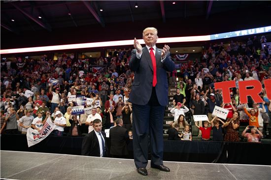 ▲공화당 대선후보 도널드 트럼프가 3일(현지시간) 콜로라도 주 러브랜드 유세장에서 박수치고 있는 모습(사진=AP연합뉴스)