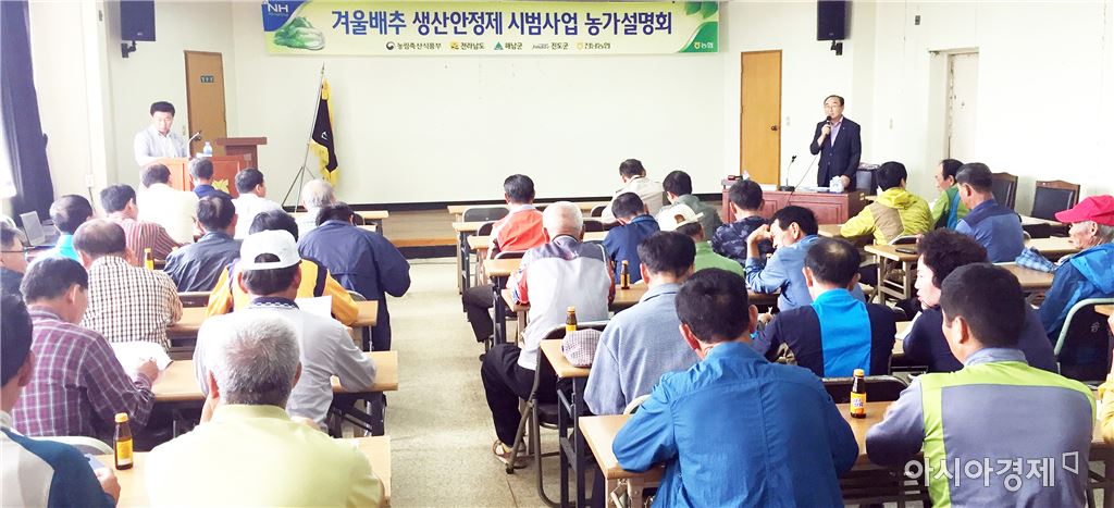 "가격 보전으로 생산 농가의 큰 호응 이어져 " [아시아경제 노해섭 기자]농협전남지역본부는 겨울배추 생산안정제 시범사업 농가설명회를 최근 진도 선진농협에서 관내 생산농업인 150여명을 대상으로 개최해 큰 호응을 얻었다고 10일 밝혔다.시범사업으로 시행되는 겨울배추 생산안정제는 농협에 계약재배를 약정한 농가에 대해 평년가격의 80% 수준인 기준가격과 시장가격의차액을 보전하는 제도이다.이번 설명회는 생산안정제의 주요 사업내용, 수급안정기금의 조성·운용계획, 농업인 최대 관심사항인 시장가격 차액 보전을 중심으로 진행되었다.농업인들은‘자연재해에 대해서도 보상해 줄 것과 중간 상인들이 제시하는 가격 수준으로 계약단가를 높여 줄 것’을 요구했다.강남경 본부장은“생산안정제 시범사업은 농업인 소득향상과 안정을 위해 꼭 필요한 제도라고 강조하며 겨울배추 생산농가의 많은 참여를 당부한다”고 말했다.노해섭 기자 nogary@<ⓒ세계를 보는 창 경제를 보는 눈, 아시아경제(www.asiae.co.kr) 무단전재 배포금지>