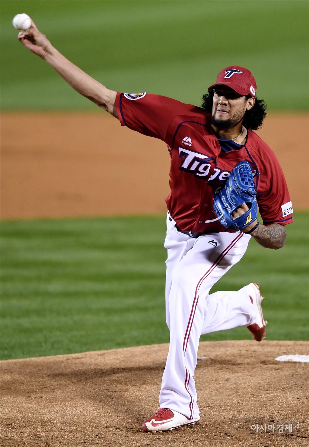 [아시아경제 김현민 기자]프로야구 KIA 타이거즈와 LG 트윈스의 2016 KBO 포스트시즌 와일드카드 결정 1차전10일 잠실구장에서 열렸다. KIA 선발투수 헥터가 역투하고 있다. 김현민 기자 kimhyun81@asiae.co.kr<ⓒ세계를 보는 창 경제를 보는 눈, 아시아경제(www.asiae.co.kr) 무단전재 배포금지>