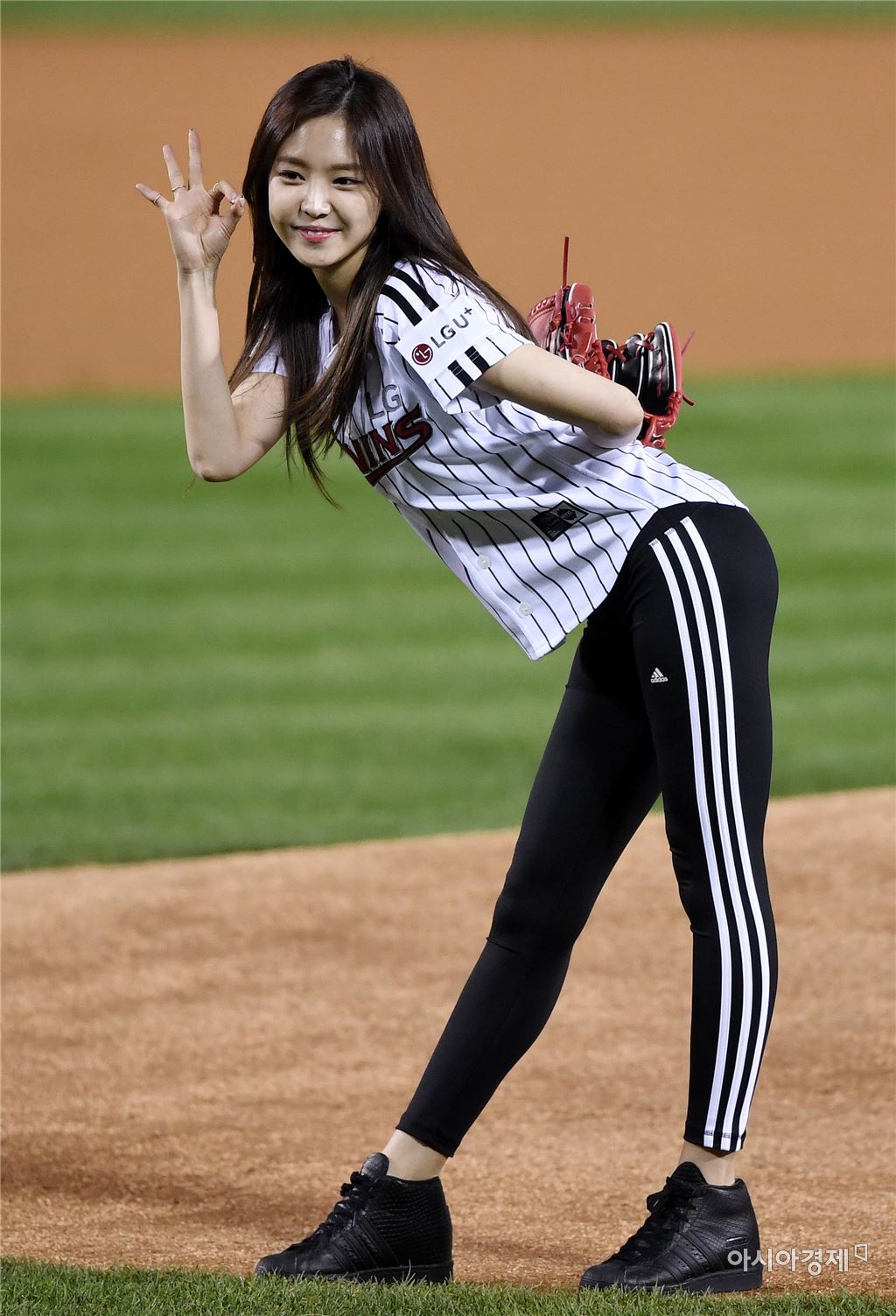 [아시아경제 김현민 기자]프로야구 KIA 타이거즈와 LG 트윈스의 2016 KBO 포스트시즌 와일드카드 결정 1차전10일 잠실구장에서 열렸다. 걸그룹 에이핑크 손나은이 시구하고 있다. 김현민 기자 kimhyun81@asiae.co.kr<ⓒ세계를 보는 창 경제를 보는 눈, 아시아경제(www.asiae.co.kr) 무단전재 배포금지>