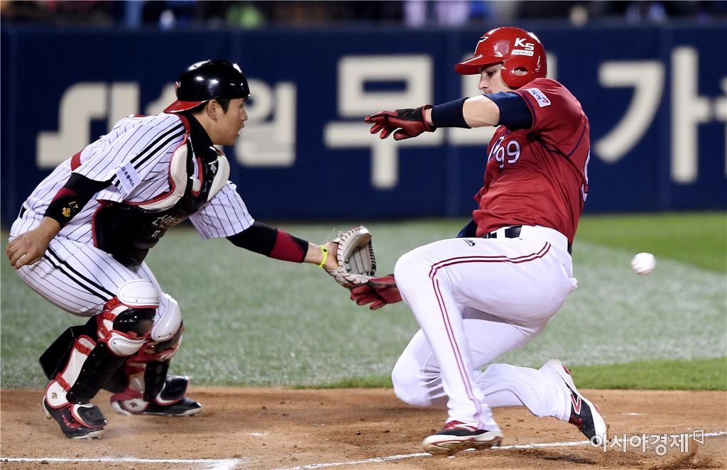 [아시아경제 김현민 기자]프로야구 KIA 타이거즈와 LG 트윈스의 2016 KBO 포스트시즌 와일드카드 결정 1차전이 10일 잠실구장에서 열렸다. 6회초 1사 3루에서 KIA 나지완의 추가 1타점 중견수 희생플라이 때 3루주자 필이 득점하고 있다. 김현민 기자 kimhyun81@asiae.co.kr<ⓒ세계를 보는 창 경제를 보는 눈, 아시아경제(www.asiae.co.kr) 무단전재 배포금지>