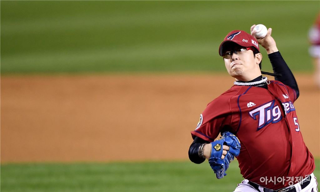 [아시아경제 김현민 기자]프로야구 KIA 타이거즈와 LG 트윈스의 2016 KBO 포스트시즌 와일드카드 결정 2차전이 11일 잠실구장에서 열렸다. KIA 선발투수 양현종이 역투하고 있다. 김현민 기자 kimhyun81@asiae.co.kr<ⓒ세계를 보는 창 경제를 보는 눈, 아시아경제(www.asiae.co.kr) 무단전재 배포금지>
