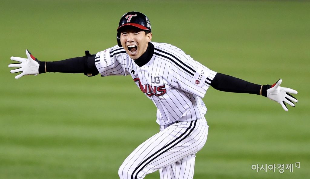 [아시아경제 김현민 기자]프로야구 KIA 타이거즈와 LG 트윈스의 2016 KBO 포스트시즌 와일드카드 결정 2차전이 11일 잠실구장에서 열렸다. 9회말 1사 만루에서 LG 김용의가 끝내기 중견수 희생플라이를 치고 환호하고 있다.김현민 기자 kimhyun81@asiae.co.kr<ⓒ세계를 보는 창 경제를 보는 눈, 아시아경제(www.asiae.co.kr) 무단전재 배포금지>