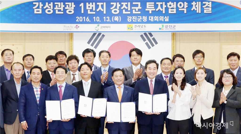 "13일 다산베아채컨트리클럽(주) 등과 590억 원 투자협약" [아시아경제 노해섭 기자]전라남도와 강진군은 13일 이낙연 도지사, 강진원 군수, 김호남 다산베아채컨트리클럽㈜ 회장, 김재용 고마미지㈜ 대표이사 등이 참석한 가운데 590억 원 규모의 투자협약을 체결했다. 이에 따른 일자리 창출 규모는 220명이다.투자협약에 따라 다산베아채컨트리클럽㈜은 강진 도암면 학장리 일원 147만 9천 140㎡ 부지에 550억 원을 투자해 오는 2019년까지 해양 조망형 대중제 골프장 27홀과 타운하우스 등을 갖춘 강진베아채 골프리조트를 건설한다.골프리조트가 완공되면 지역 주민 200여 명이 새 일자리를 갖게 돼 ‘청년이 돌아오는 전남’실현과 지역경제 활성화에 기여할 것으로 기대된다.강진만의 비경을 조망하면서 골프를 즐길 수 있는 골프장은 지난 2005년부터 강진군과 지역 주민들이 주축이 돼 투자유치를 추진해왔으며, 2012년 말까지 부지 매입과 착공에 필요한 행정절차를 완료했다.그동안 글로벌 경제악화 등으로 착공에 많은 어려움을 겪어 왔으나, 이번에 건실한 투자자를 새롭게 만나 탄력을 받게 됐다.다산베아채CC㈜는 1989년 4월에 설립돼 목포에 본사를 둔 향토기업 근화건설㈜의 자회사다.고마미지㈜는 강진산업단지 6천㎡의 부지에 40억 원을 투자해 오는 2019년까지 배추김치 등 절임식품과 각종 밑반찬, 음료 등의 가공시설을 갖춘 농산물 가공공장을 짓는다. 이로 인해 지역 주민 20여 명에게 새로운 일자리를 제공하는 것은 물론 지역 농산물의 안정적 판로 확보에도 기여할 전망이다.고마미지㈜는 강진지역 30∼40대 젊은 귀농인 8농가가 딸기 재배를 위해 2012년 설립한 농업회사 법인이다.김호남 회장은 “강진만의 비경에 걸맞은 명품 골프장을 조성해 골프인구의 저변 확대에 기여하는 것은 물론 지역민과 함께 하는 골프리조트를 운영하겠다”고 말했다.김재용 대표는 “좋은 농산물을 이용해 소비자가 안심하고 먹도록 맛과 품질, 위생 관리에 최선을 다하겠다”고 밝혔다.이낙연 도지사는 “수려한 경관의 강진만이 내려다 보이는 곳에 10여 년의 우여곡절을 겪은 골프리조트를 조성하게 됐다”고 평가했다. 또한 “생산·가공·유통·판매 등 농업의 6차산업화에 나서는 고마미지의 농산물 가공공장은 주변 농가와의 계약재배를 통해 농민들에게 안정적 판로를 제공하게 될 것”이라고 덧붙였다.강진원 강진군수는 “지난 10여 년 간 추진하지 못했던 강진 골프장 사업이 드디어 빛을 보게 된 것은, 군민들의 아낌없는 성원과 공직자들의 끈질긴 노력 덕분”이라며 “앞으로도 지역경제 활성화를 위해 투자기업 발굴 유치에 최선을 다하겠다”고 말했다.노해섭 기자 nogary@<ⓒ세계를 보는 창 경제를 보는 눈, 아시아경제(www.asiae.co.kr) 무단전재 배포금지>