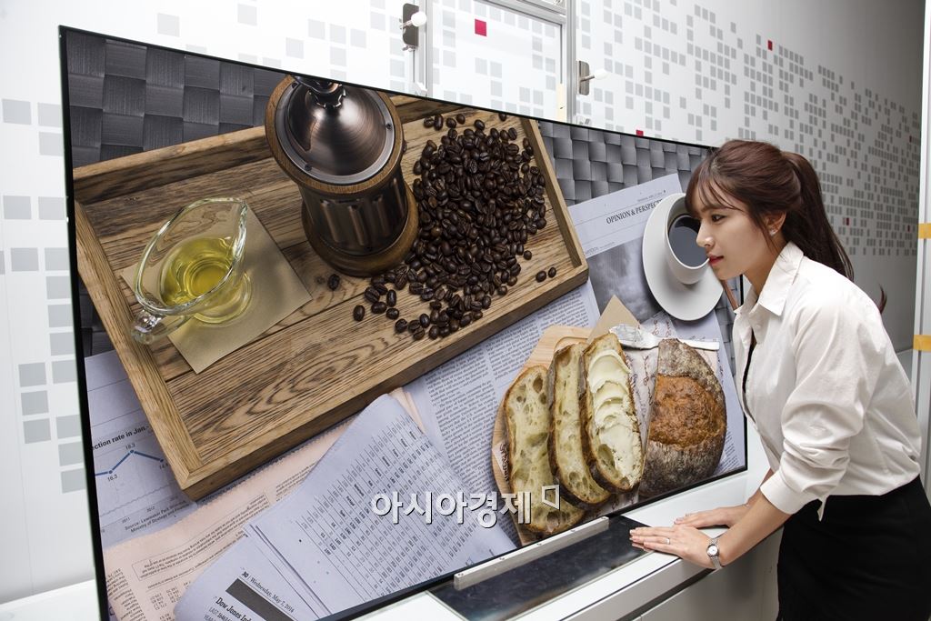 ▲LG디스플레이의 TV용 OLED패널이 사용된 LG전자 65인치 UHD OLED TV.(제공=LG디스플레이)