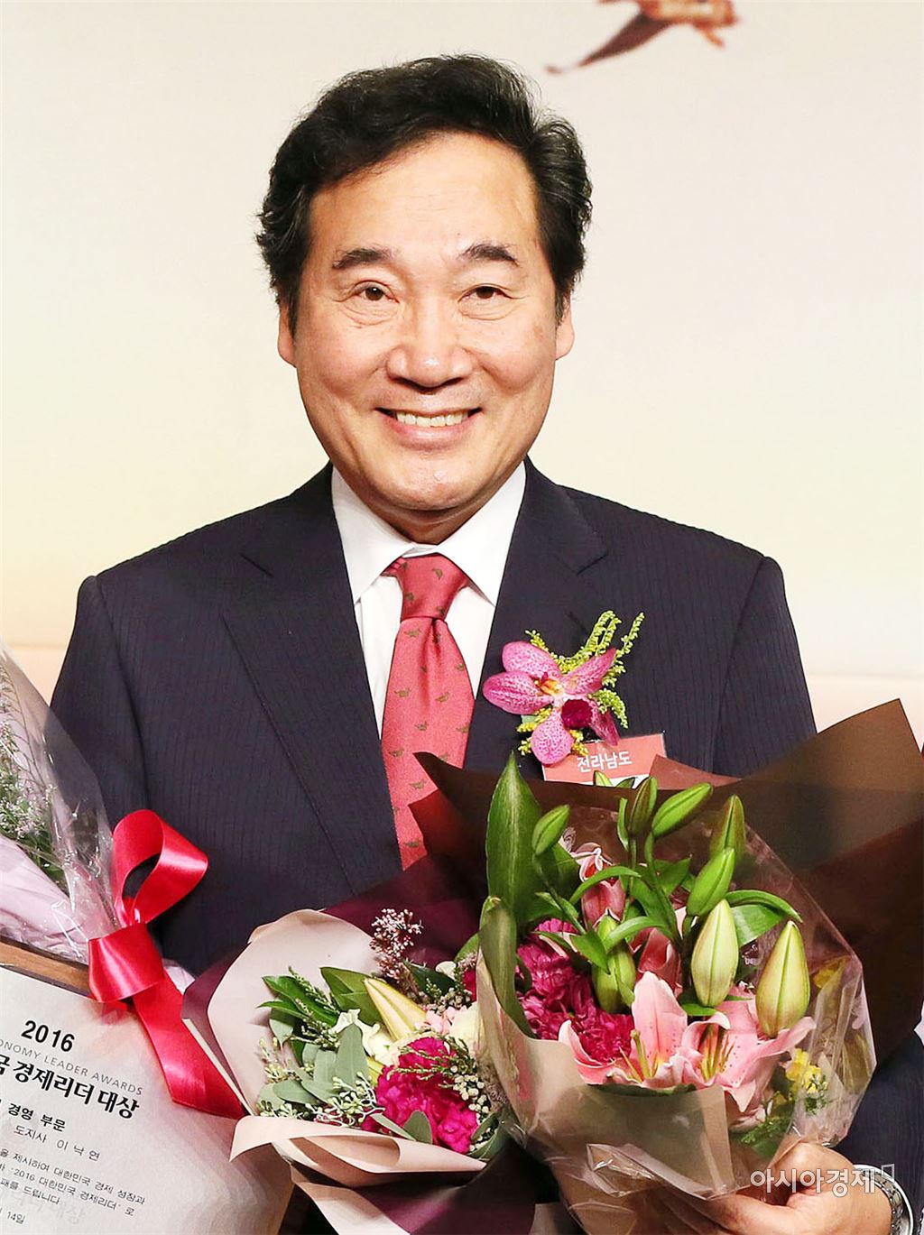 [아시아경제 노해섭 기자]이낙연 전남지사가 14일 중앙일보와 주간경제잡지 이코노미스트에 의해 '2016대한민국 경제리더’의 한 사람으로 선정됐다.이 지사는 이날 중앙일보와 이코노미스트가 서울힐튼호텔에서 주최한 '2016대한민국 경제리더’시상식에서 미래경영부문 경제리더 대상을 받았다.이날 중앙일보와 이코노미스트는 기업 경영자와 지방자치단체 책임자 등 전국 35명을 경제리더로 선정해 시상했다.광역자치단체장으로서는 유정복 인천시장과 이 지사가, 전남지역 기초자치단체장으로서는 안병호 함평군수, 이용부 보성군수, 신우철 완도군수가 경제리더로 뽑혔다.이 지사는 △고용노동부의 2016년 일자리종합대상 수상 △에너지밸리 조성 등 기업유치 △출산율 전국 1위 8년 연속 달성 △2015년 관광객 전국 2위 달성 △산업평화 최우수상 또는 우수상 8년 연속 수상 △노인일자리 대상 4년 연속 수상 △2014 지역사회 복지대상 수상 △‘가고 싶은 섬’과 ‘숲 속의 전남’시행 등이 평가받았다고 주최측이 설명했다.이 지사는 “일자리 종합대상의 수상 등이 평가된 것으로 보이지만, 그보다는 앞으로 더 잘하라는 뜻이 담긴 것으로 받아들인다”면서 “대한민국의 미래경제를 위해 더욱 분발하겠다”고 말했다.노해섭 기자 nogary@<ⓒ세계를 보는 창 경제를 보는 눈, 아시아경제(www.asiae.co.kr) 무단전재 배포금지>