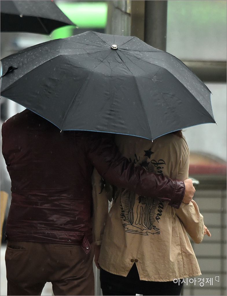 [아시아경제 윤동주 기자] 가을비가 내린 16일 서울 마포구 합정역 부근을 지나는 한 커플이 우산을 쓰고 걸어가고 있다.윤동주 기자 doso7@asiae.co.kr<ⓒ세계를 보는 창 경제를 보는 눈, 아시아경제(www.asiae.co.kr) 무단전재 배포금지>