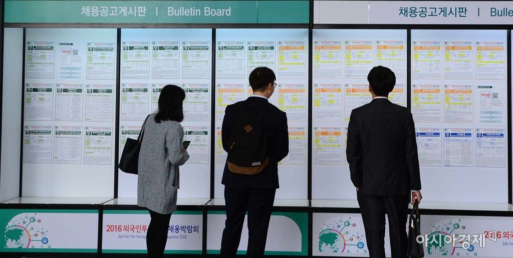 [아시아경제 백소아 기자] 17일 서울 강남구 코엑스에서 열린 2016 외국인투자기업 채용박람회에 구직자들이 채용정보게시판을 둘러보고 있다.백소아 기자 sharp2046@asiae.co.kr<ⓒ세계를 보는 창 경제를 보는 눈, 아시아경제(www.asiae.co.kr) 무단전재 배포금지>