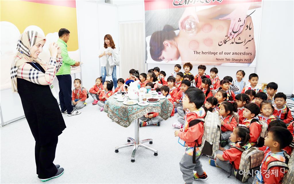 [아시아경제 노해섭 기자]2016장흥국제통합의학박람회장을 찾은 어린이들이 국제관 이란 부스에 들러 부스 관계자로부터 현지 대체의학에 대해 설명을 듣고 있다. 이번 박람회에는 46개국 85개 기관이 참가했다.사진제공=장흥군 <ⓒ세계를 보는 창 경제를 보는 눈, 아시아경제(www.asiae.co.kr) 무단전재 배포금지>