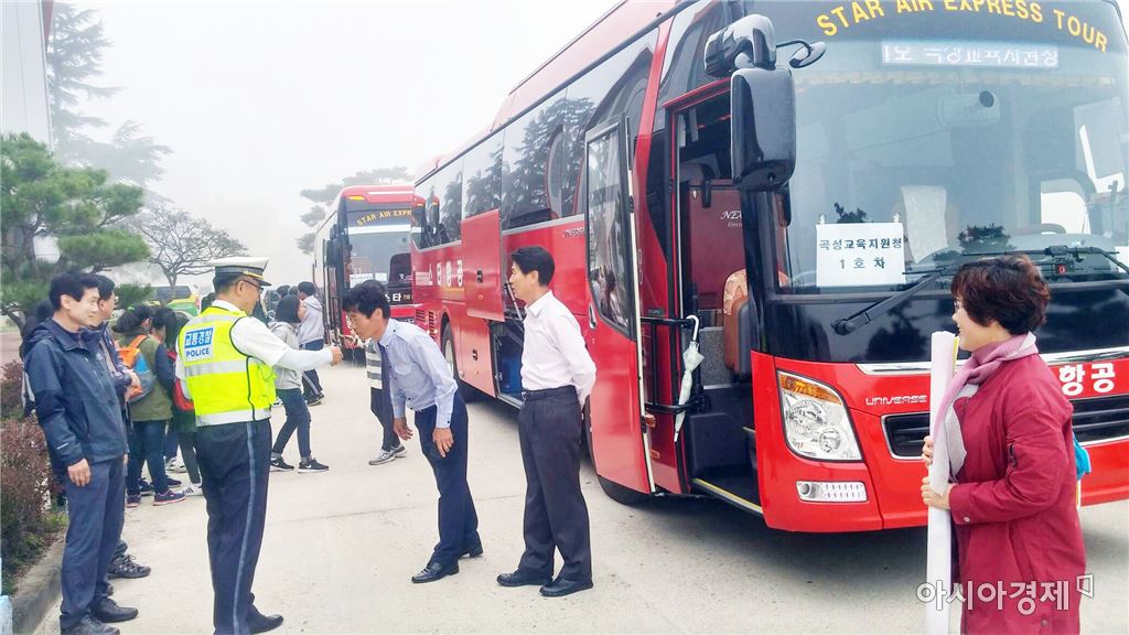 [아시아경제 노해섭 기자]곡성경찰서(서장 오상택)는 지난 15일 곡성교육지원청 영재교육원 학생 현장체험학습 이용차량에 대해 운전자 음주여부 및 차량불법개조 등 안전점검을 실시하고 안전벨트 착용 당부 등 교통사고 예방활동을 전개했다고 밝혔다. 곡성경찰서는 행락철 대형버스 운전기사를 대상으로 지속적인 점검과 안전교육을 실시해 대형 교통사고가 발생치 않도록 최선을 다할 계획이다.노해섭 기자 nogary@<ⓒ세계를 보는 창 경제를 보는 눈, 아시아경제(www.asiae.co.kr) 무단전재 배포금지>