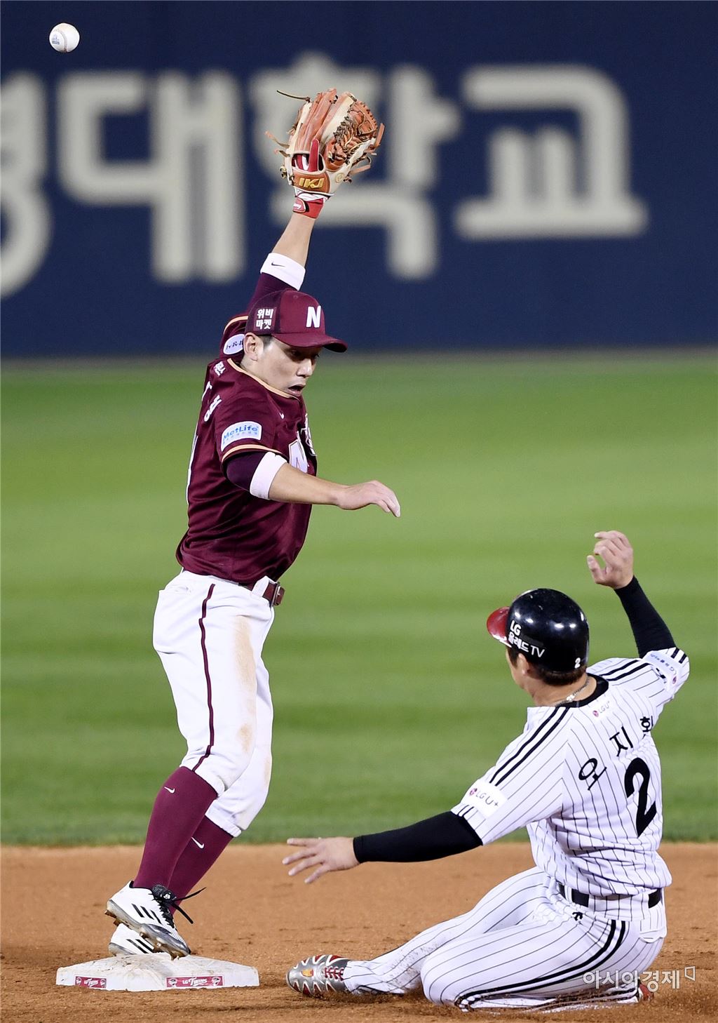 [아시아경제 김현민 기자]프로야구 넥센 히어로즈와 LG 트윈스의 2016 KBO 포스트시즌 준플레이오프 4차전이 17일 잠실구장에서 열렸다. 3회말 2사 1,2루에서 넥센 2루수 서건창이 LG 채은성의 타구를 잡은 유격수 김하성의 토스를 놓치고 있다. 서건창이 공을 놓치면서 1실점, 김하성의 실책이 됐다.김현민 기자 kimhyun81@asiae.co.kr<ⓒ세계를 보는 창 경제를 보는 눈, 아시아경제(www.asiae.co.kr) 무단전재 배포금지>