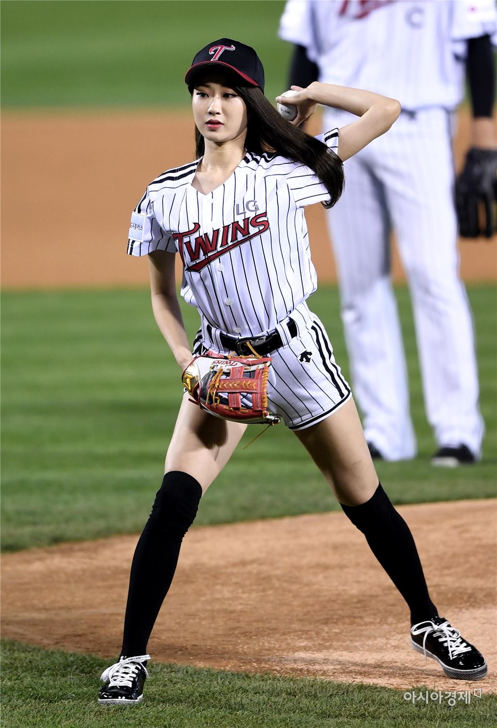 [아시아경제 김현민 기자]프로야구 넥센 히어로즈와 LG 트윈스의 2016 KBO 포스트시즌 준플레이오프 4차전이 17일 잠실구장에서 열렸다. 경기에 앞서 걸그룹 나인뮤지스 경리가 시구하고 있다.김현민 기자 kimhyun81@asiae.co.kr<ⓒ세계를 보는 창 경제를 보는 눈, 아시아경제(www.asiae.co.kr) 무단전재 배포금지>